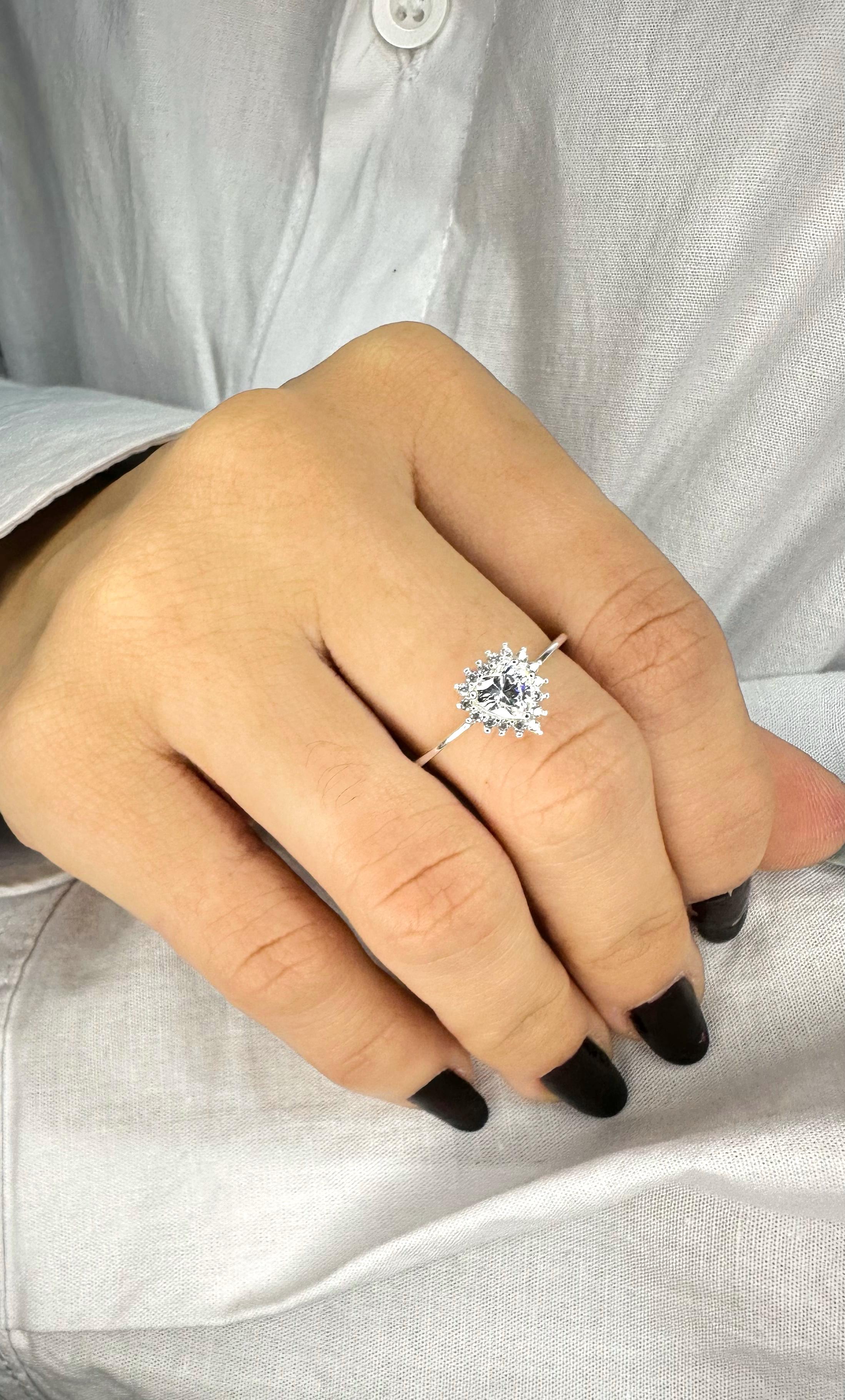 O Anel Solitário Cravejado Feminino em Prata 925 Legítima é uma joia clássica que combina brilho, elegância e sofisticação.