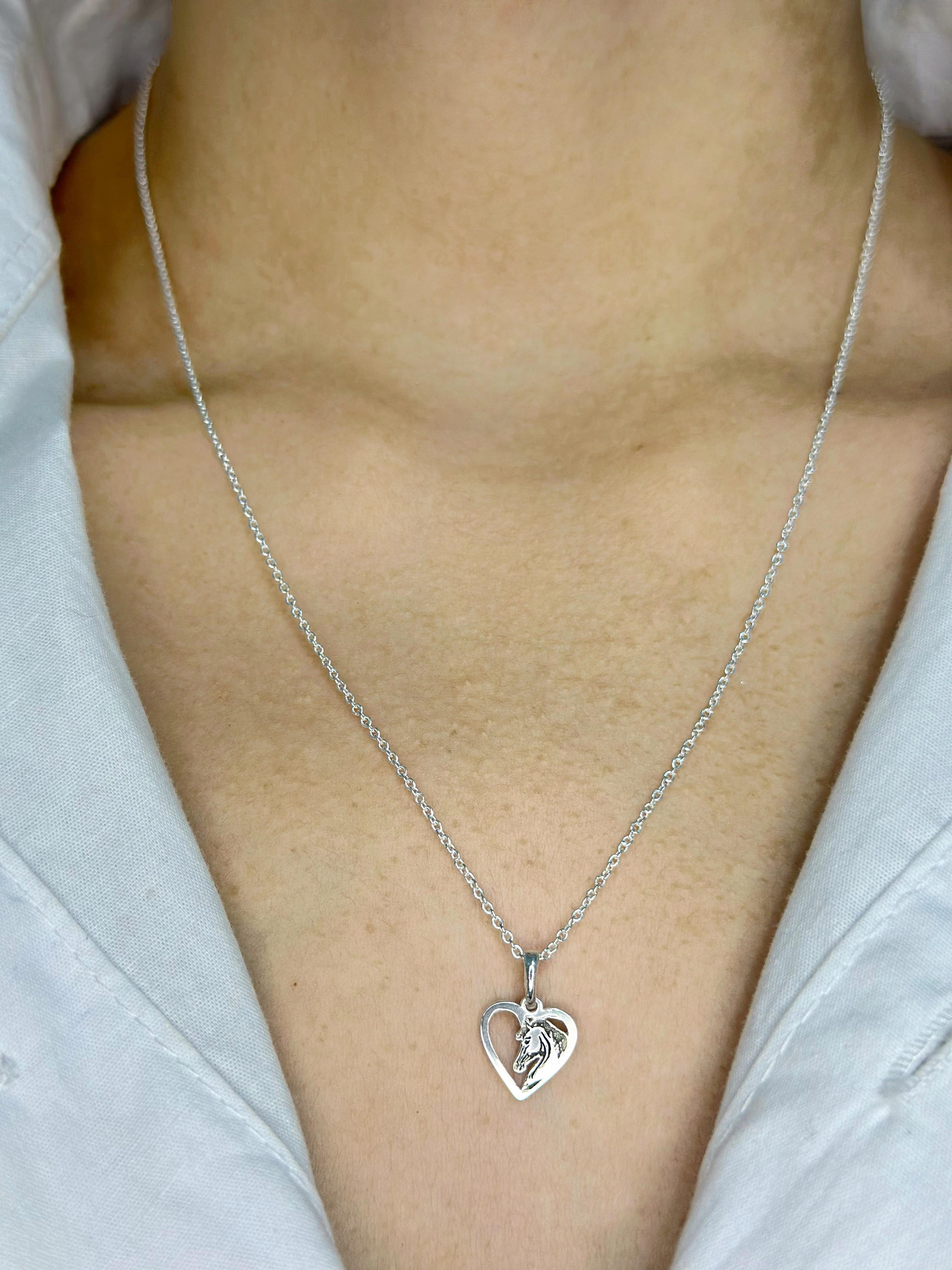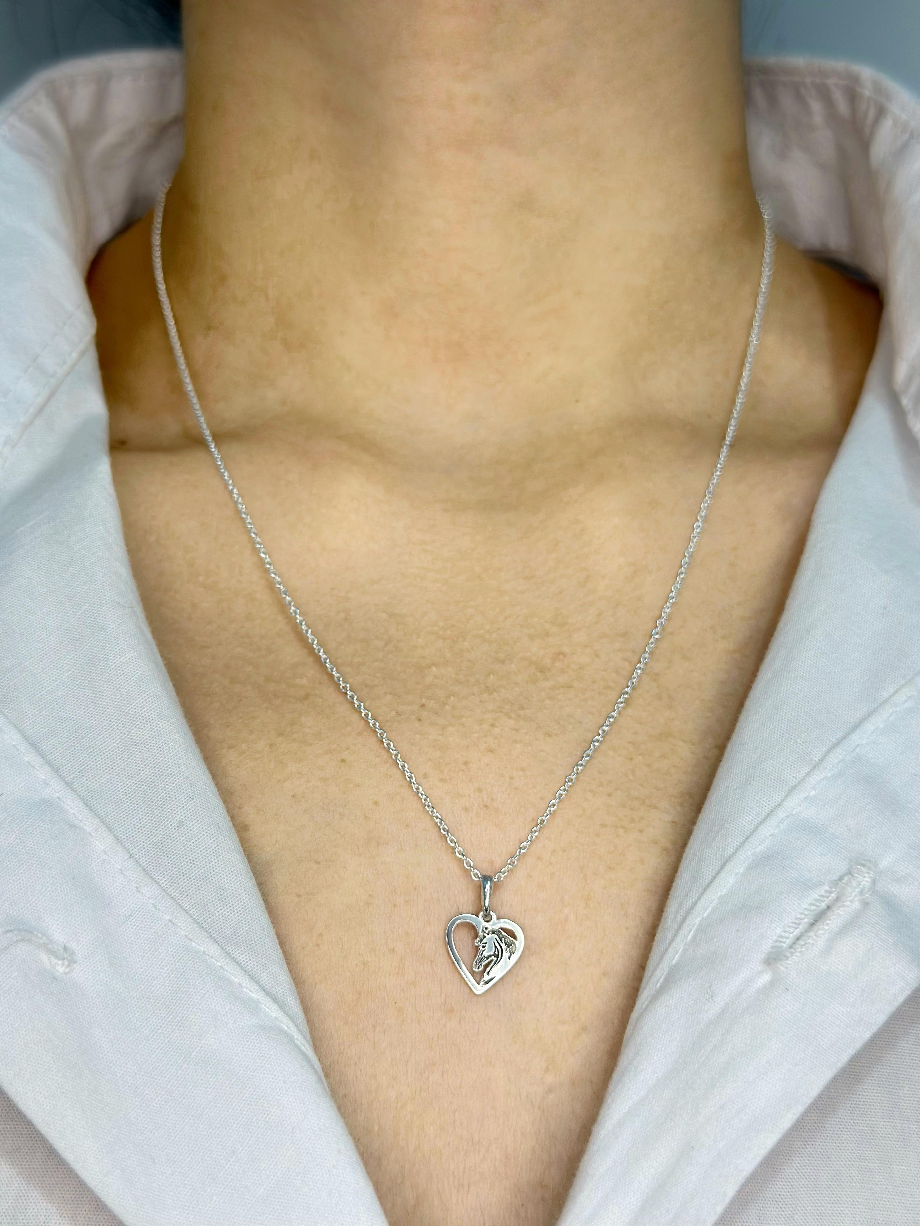 Demonstre seu amor pelos cavalos com o Colar Coração Vazado com Cavalo em Prata 925 Legítima — uma joia que une paixão, elegância e significado.