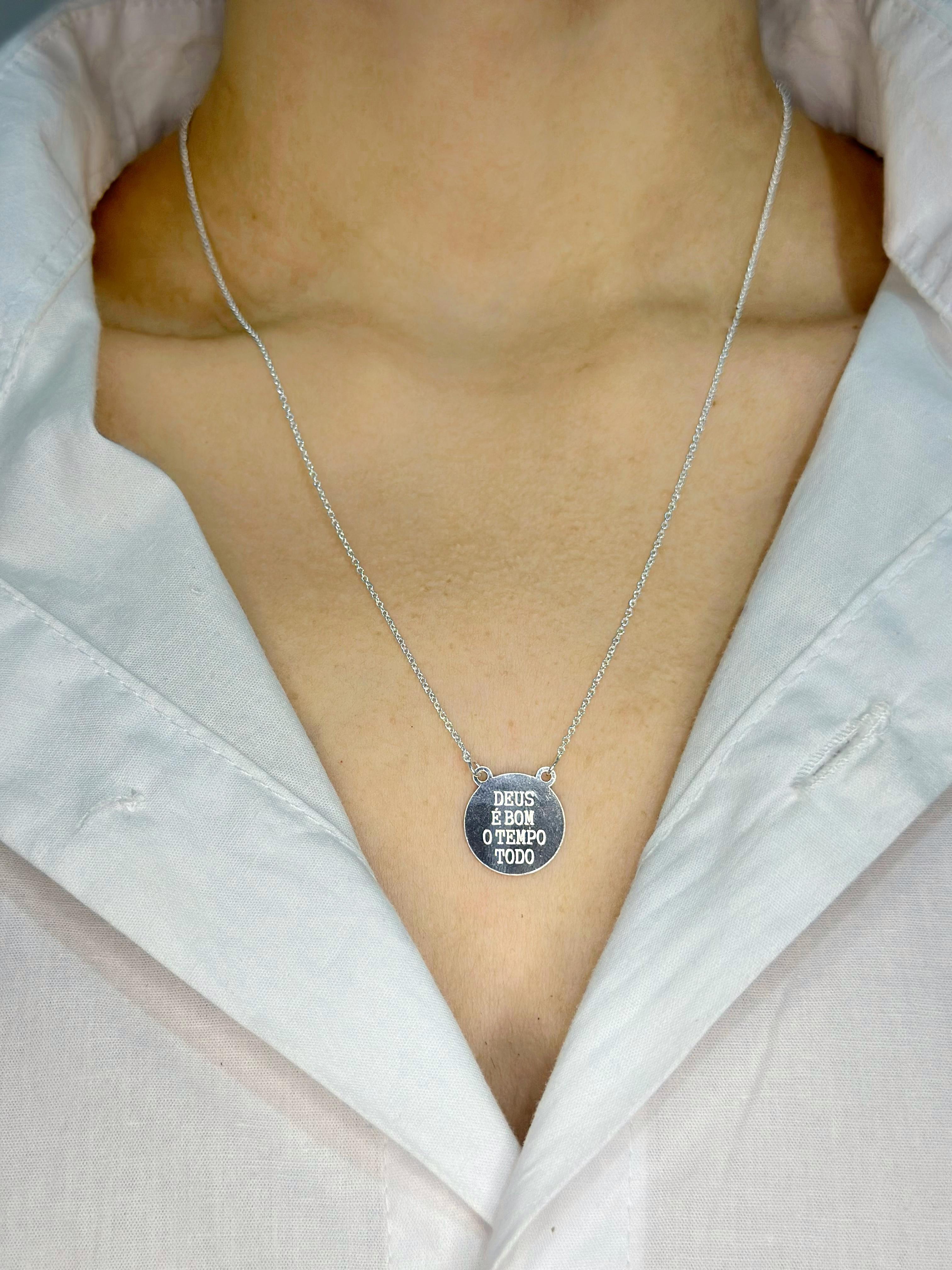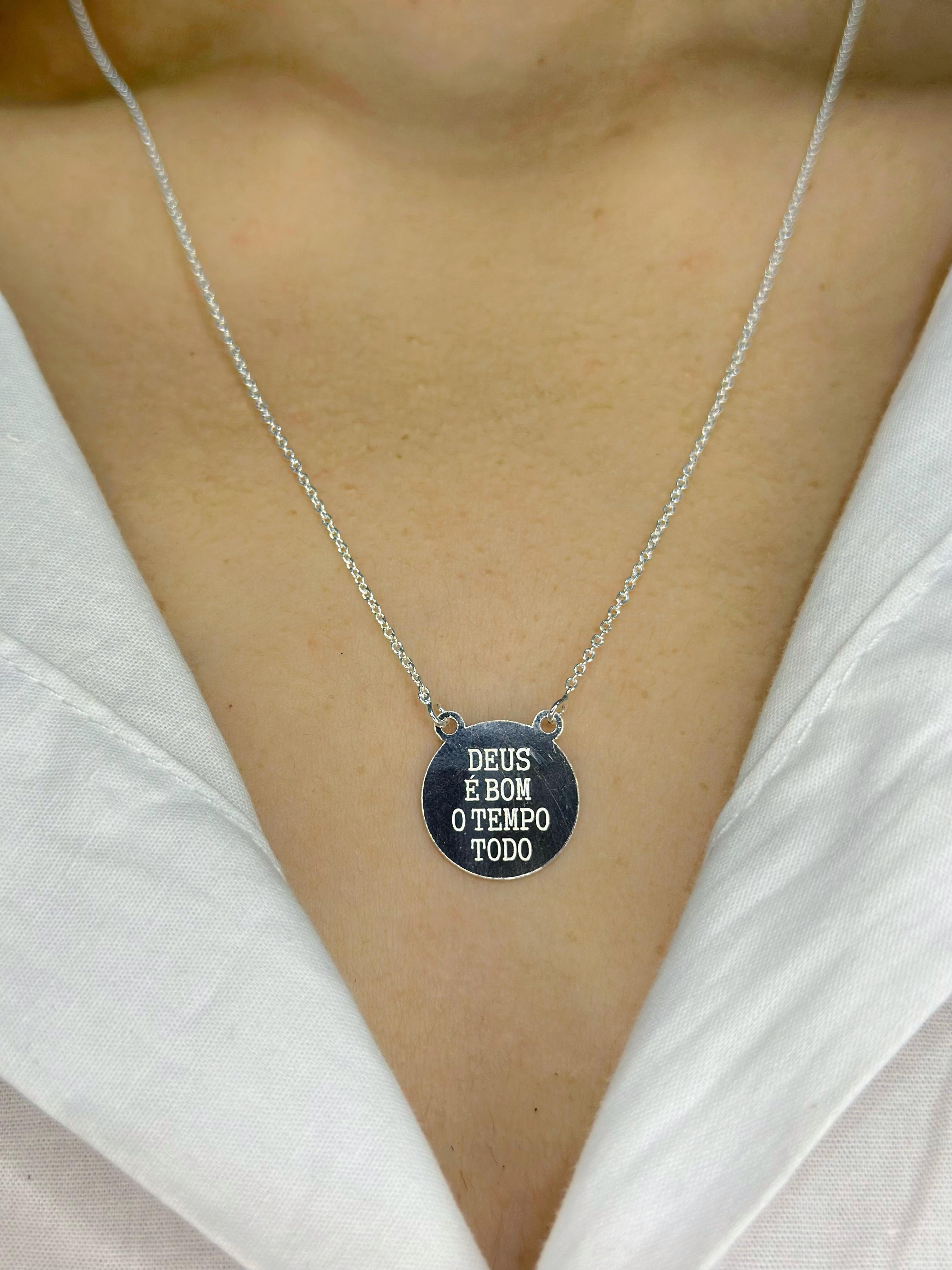 Carregue fé e gratidão com o Colar “Deus é Bom o Tempo Todo” em Prata 925 Legítima — uma joia inspiradora que reflete positividade, confiança e espiritualidade.