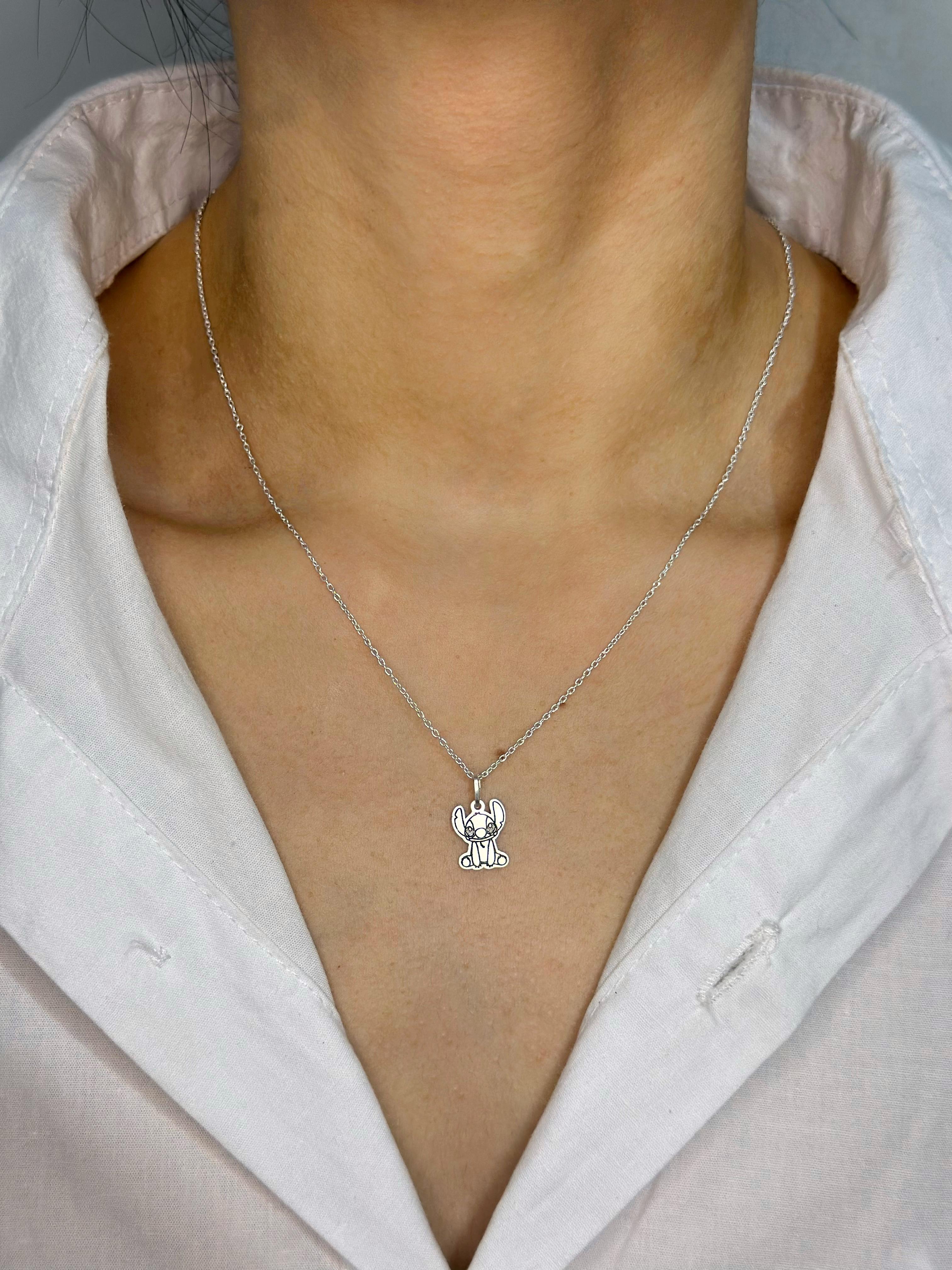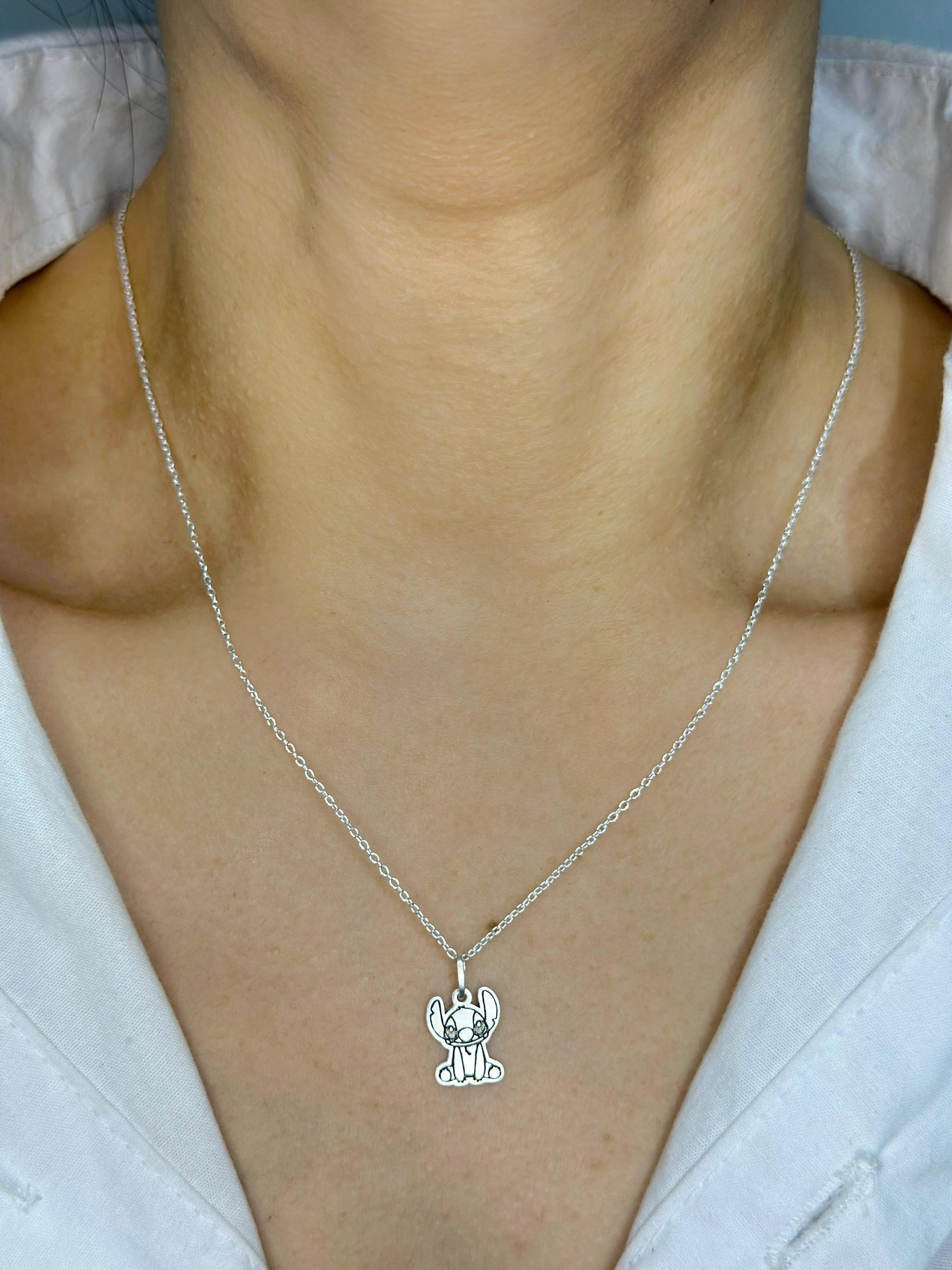 Encante-se com o Colar Stitch (aguardando) em Prata 925 Legítima, uma joia divertida e delicada que traz o charme do personagem mais amado da Disney.